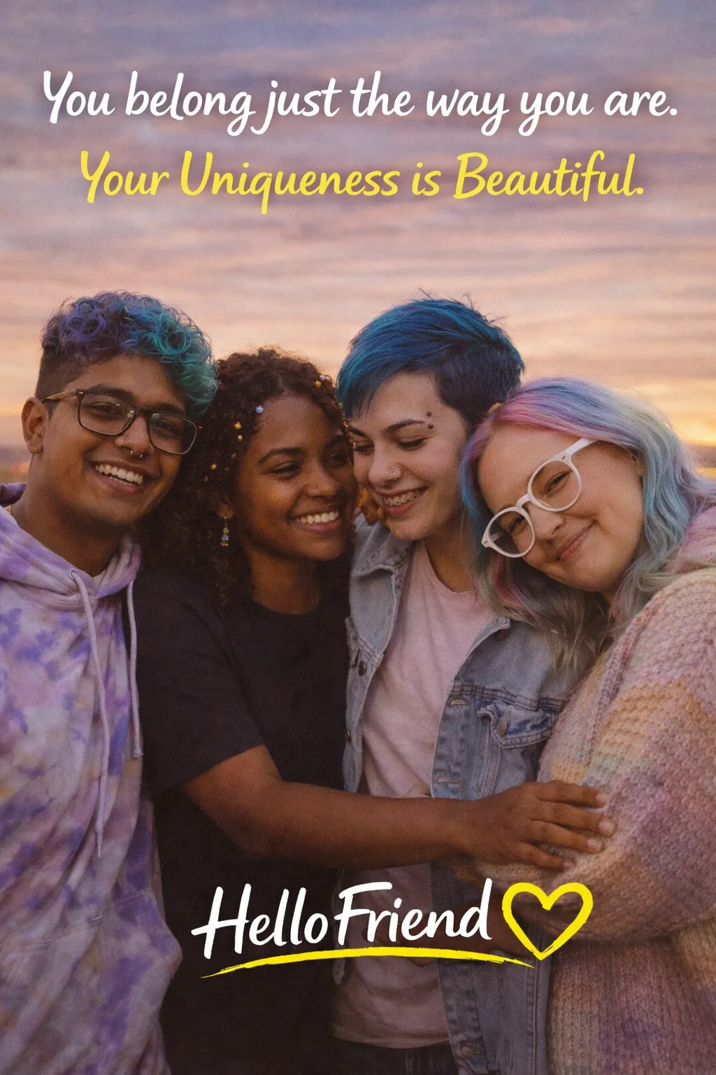 Life is complex, and everyone needs encouragement at different moments. We believe support should never come with judgment, labels, or assumptions. Hello Friend💛 offers compassionate connection rooted in understanding, patience, and respect. We don’t try to fix you—we simply walk beside you with care and sincerity.